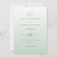 This wedding invitation features a minimalist and elegant design with a soft, pastel green gradient background that transitions from light to dark. The layout is clean and spacious, highlighting the text in a hierarchical manner using a mix of delicate script and clean serif fonts for a modern yet classic look. The overall mood is serene and sophisticated, perfect for celebrating a momentous occasion. Customizable elements allow personalization while maintaining an understated elegance, making it ideal for couples seeking a tranquil and refined aesthetic for their special day.