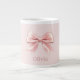 Elegant Pastel Pink Bow & Name Personalised Large Coffee Mug