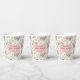 Bridal shower cups featuring pastel rose bouquets and a shabby chic design.