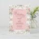A wedding invitation featuring pastel rose bouquets and a shabby chic design.