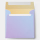 Envelope in soft pastel colours featuring a lilac dream blue gradient on the outside and a lining in warm ochre yellow colours. Please customise or delete the back flap text. This envelope matches a wedding invitation.