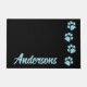 Welcome guests to your home with these elegant turquoise blue glitter paw prints and personalised monogrammed name doormats and home decor This blue and black paw print design is trendy, elegant and a favourite. A must have for every pet cat or dog mum, and animal, cat, and dog lover. Wonderful personalised Christmas or birthday gift. COPYRIGHT © 2020 Judy Burrows, Black Dog Art - All Rights Reserved