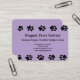 Make a professional first impression with this elegant and playful business card for your cattery. Featuring a soft lavender background, a black paw print border, and clear text layout, this card is fully customisable with your name, contact info, and opening hours. Perfect for cat breeders, pet sitters, or feline care professionals who want a stylish and memorable design.