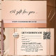 Elegant business card sized gift card voucher in peach and blush pink with a rose gold lining. A logo template as well as a QR code template are added for your convenience. Beautiful for a beauty salon, massage therapist or a retail business catering to a female clientele.