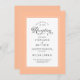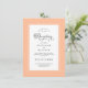 Peach wedding reception enclosure card design features a beautiful chic border in trendy peach that includes an elegant petite white border. Calligraphy and script are charcoal grey on a white background. A modern template for date and year compliments the unique calligraphy design. [NOTE: The wedding date display as shown, uses the vertical bar or line which can be found above the \ on a keyboard or on your smart device with the special characters. You can also customise with any other character of your choice.] The back of the card is solid peach.