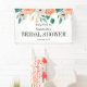 Personalised floral banner for an elegant bridal shower. Party decorations with flowers in green and peach or salmon colours. Backdrop decor for indoor or outdoor use. Be sure to visit our collection to see more coordinating items that match this design for your special event.