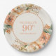Elegant Peach Cream Floral 90th Birthday Paper Plate