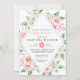 Elegant peach, blush white, and pinks watercolor floral baby shower invitation, diamond shaped. Customise names, dates, and information.