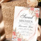 Elegant Peach Floral Glitter Sweet 16 Birthday Invitation
