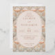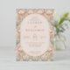 This elegant wedding invitation features a sophisticated floral pattern with soft pastel hues of peach, pink, and cream, creating an inviting and romantic atmosphere. The design is centered around an oval frame that elegantly encases the text, ensuring it stands out against the intricate background. With its refined typography and delicate color palette, this invitation exudes timeless charm and grace, perfect for setting the tone for a beautiful celebration. It’s ideal for couples looking to convey a sense of classic elegance on their special day.