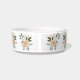 This personalised pet bowl for a dog or cat has an elegant floral print of peach flowers against a white background.