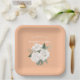 Elegant Peach Fuzz and White Roses Wedding Paper Plate