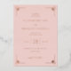 This elegant wedding invitation features a soft peach background with gold accents, creating a warm and inviting atmosphere. The design showcases a modern, minimalist style with geometric shapes in the corners, enhancing its sophisticated look. A mix of script and serif fonts adds a personal touch while maintaining clarity and formality. Perfect for couples seeking a stylish yet understated invitation, this design sets the tone for a memorable celebration.