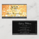 Elegant Peach Glitter Monogram Black Silver Border Business Card