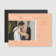 This save the date engagement announcement magnetic card features elegant calligraphy and simple sans serif typography font with a photo and calendar on a peach background with faux gold lines, gold heart ring, and black/white text for a clean minimalist and modern look, which is a beautiful way to tell your guests to inform about your upcoming wedding. Announce to your family and friends you are getting married with this magnetic card and add a personal touch with a photo of you and your soon-to-be better half. The simplicity of this design adds a touch of elegance to your wedding save the date invitation cards. It works well with many wedding themes and definitely a great addition to your wedding. Just customise the names, location, wording and ring placement of the date in a few easy steps and personalise the magnetic card with your photo of the happy couple.