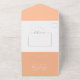 This all-in-one invitation features an elegant calligraphy and simple typography font with an arch shape heading on a peach background and photo and QR Code. The simplicity of this design adds a touch of elegance to your wedding. It works well with many wedding themes and definitely a great addition to your wedding. Just customise the names and wording in a few easy steps and personalise the all-in-one invitation card with your photo of the happy couple and replace the QR Code with yours to give your invitation a nice personal touch. This invitation will save you money to send everything at once. It has a perforated RSVP postcard can be easy to tear off and your guest just sends it to you. Just simply fold each card into the outlined shape -- seal and send to your guests. No envelope is needed for shipping -- just postage.
