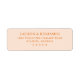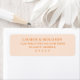 This elegant label features a clean, centred layout with customisable text on a warm peach background. The design utilises a modern sans-serif font in a complementary orange hue, creating a sophisticated and minimalist aesthetic. Perfect for personalising envelopes or packages, this label exudes simplicity and clarity, making it ideal for formal correspondence or special occasions. Its straightforward style ensures that the focus remains on the essential details without any distractions.