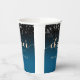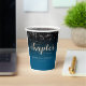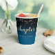 Make your special day an unforgettable celebration with these simple but stylish paper cups, which feature elegant handwritten and block lettering in peach with a shower of confetti set on a black to dazzling oceanic shade of blue evocative of the Mediterranean background. Customise as desired. Reverse shows identical design.