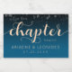 Add your personal brand to your special day with these celebratory simple but stylish wedding mini sparkling wine bottle labels, which feature elegant handwritten and block lettering in peach with a shower of confetti set on a black to dazzling oceanic shade of blue evocative of the Mediterranean background. Customise as desired.