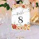 Elegant Peach, Orange Peonies Floral Table Number