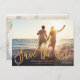 Elegant peach orange script 2 photos save the date, all the colours are fully editable to match your wedding colour scheme.