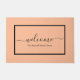 Elegant welcome doormat with a black script on a trendy peach background. Personalise with your family name or text.