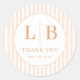 Elegant Peach Stripes and Initials Classic Round Sticker