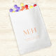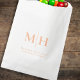 Make a stylish impression with this wedding guest favour bag featuring a custom monogram and a simple, minimalist design. Perfect for treat or dessert packaging, this bag adds a refined touch to your reception decor with its soft peach tones and elegant floral greenery accents. Designed with a clean, basic minimal aesthetic, it’s an effortlessly chic way to thank your guests with a thoughtful and beautiful keepsake.