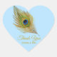 Elegant peacock feather golden Thank You Heart Sticker