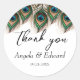 Elegant Peacock Feather Wedding Classic Round Sticker