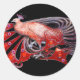 ELEGANT PEACOCK IN RED,BLACK CLASSIC ROUND STICKER