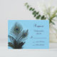 Elegant peacock feathers decorate this wedding RSVP on a turquoise background. The RSVP is shown on the basic paper; however, I recommend the shimmer of the pearl shimmer paper to bring out the iridescence of the feathers.
