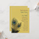 Simply elegant peacock feathers decorate this wedding invitation on a pale saffron yellow background. Highlights in the feathers are accentuated with the names of the bride and groom in a deep turquoise. This invitation is shown on the basic paper; however, I recommend the shimmer of the pearl shimmer paper to bring out the iridescence of the feathers. This invitation is part of the full wedding line Elegant Peacock and is also available in turquoise, green and purple.
