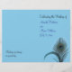 Elegant peacock feathers decorate this wedding program on a turquoise background. It is printed on the lightweight flyer paper so that it is easy to fold in half.