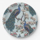 Elegant Peacocks & Magnolia Flowers Blue Paper Plate