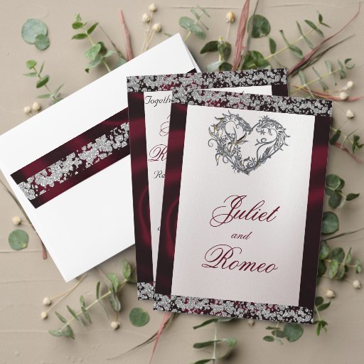 Romantic wedding themed table card features a white pearl satin background with burgundy ribbon and sparkle borders, stylish script & elegant fonts. Perfect for the simple to most elegant wedding. Also available with different coloured ribbon for your wedding theme colours. Designed to coordinate with the "Romantic Hearts, Ribbon & Sparkle on Pearl" collection. To change details, click «Personalise». To move the text or change the text size, font, or colour click «Click to customise further»