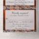Elegant Pearl, Copper Ribbon & Glitter Borders All in One Invitation. Romantic wedding themed all in one invitation features a white pearl satin background with copper ribbon & glitter borders, delicate silver scroll heart, stylish script & elegant fonts. Perfect for the simple to most elegant wedding. Also available with different colored ribbon for your wedding theme colors. (Ribbon & glitter are simulated in the artwork.) Designed to coordinate with the "Romantic Hearts, Ribbon & Sparkle on Pearl" collection. To change details, click «Personalize». To move the text or change the text size, font, or color click «Click to customize further»