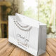 White and Beige Elegant Bridal Shower Large Gift Bag featuring a silver pearl necklace in watercolor. It’s very easy to customise, with your personal details.