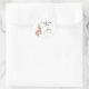 The sticker is made on wonderful paper and had no problem sticking to the bag that I purchased to put it on. I wanted to find a design that would be cute for the bride and groom and this one fit the bill as it has cute "bees" buzzing around and the wedding was taking place in a town called "Bee Cave". The packaging was great and protected the stickers. The website is easy to navigate and there are so many color choices. I had no problem finding a color that the bride was using on everything else selected. The design was adorable and there were many to choose from. You can make the figure as larger or smaller and you can place the photo and writting whereever you want to in the sticker. The printing is fabulous..better than expected.