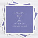 Elegant, classic Wedding napkin features a chic design in crisp white on a trendy periwinkle blue background. This modern simple design provides classic sophistication. Personalise names of couple and event date in elegant periwinkle lettering and script . These are a perfect accompaniment for any wedding party! Be sure to see the collection link on this page to view all of the matching items! Please direct questions or custom requests to invitationsuites@gmail.com.