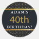 Elegant Personalised 40th Birthday Gold And Black Classic Round Sticker