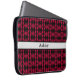 Elegant black and red abstract pattern Laptop Sleeve. Text on silver belt can be personalised.
