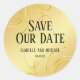Elegant Personalised Gold Flourish Save the Date Classic Round Sticker