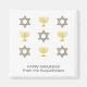 Elegant HAPPY HANUKKAH magnet, showing faux gold and silver STAR OF DAVID and MENORAH in a tiled pattern. Text reads HAPPY HANUKKAH with a placeholder name, and is CUSTOMIZABLE, so you can PERSONALIZE it by adding your name or other text. Ideal for Hanukkah celebrations, and with customisation can be suitable for any Jewish-themed event. Choose from a wide selection of Hanukkah cards and gifts by Berean Designs.
