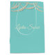 Make your gift even more special with this luxurious personalised gift bag featuring an elegant pearl design on a beautiful turquoise background. Add a name for a unique, sophisticated touch, making it perfect for birthdays, weddings, anniversaries, or any special occasion. Crafted from high-quality materials, this medium gift bag is both stylish and sturdy, ensuring your present is beautifully presented. Elevate your gifting experience with this premium and chic packaging solution!