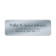 Simple, classic and elegant. The background of these labels feature digital artwork shows a realistic sheen of brushed silver. Classy dark gray lettering that you customize with your own name and address completes this luxurious return address label design.