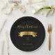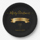 Create a beautifully coordinated holiday table with these elegant personalized Christmas paper plates. Designed with a luxurious gold script greeting, matching gold ribbon banner, and festive champagne toast illustration, these plates feature your custom family name and year for a stunning personalized touch.