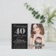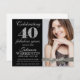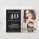 A very pretty, bold black, white and grey "silver" coloured design that works well with black and white or full colour photograph of the lovely lady (or gentleman) celebrating a milestone fortieth birthday. Invite family and friends to a special celebration. The design features classy faux glitter effect font numbers 4 and 0 and fancy script handwriting text with flourishes and curls, next to a large photo area that appears to be wrapped in a pretty faux silver glitter ribbon. Adjust your photo image sizes and cropping to suit, adjusting the ribbon if needed also by clicking the customise button. Sample image is for illustration purposes only - replace with your own photograph. Note that all embellishments are digital only, this is a flat printed product and there are no real ribbons, gems, diamonds, satin or other materials on this invitation.