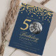 Elegant Photo 50th Birthday Gold Confetti Navy Blu Invitation