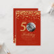 Elegant Photo 50th Birthday Gold Confetti Red Invitation